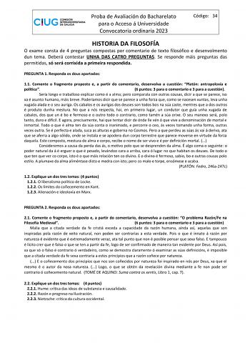 Exámenes de EBAU de Historia de la Filosofía