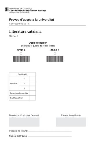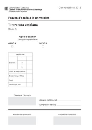Exámenes de EBAU de Literatura Catalana
